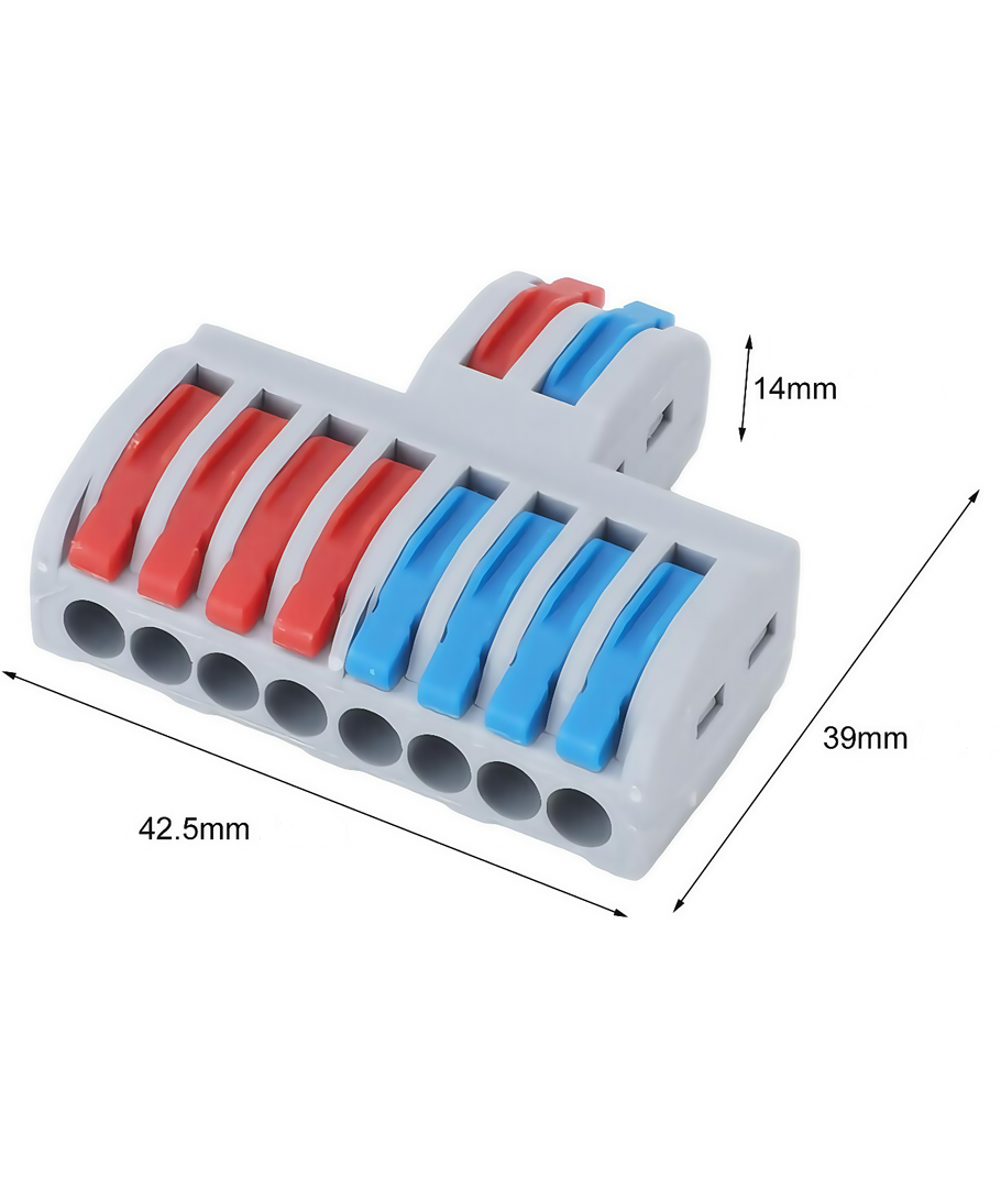 De har et praktisk tilslutningssystem, med orange vippepal, som gør det nemt at få de bløde ledere ind i hullerne.