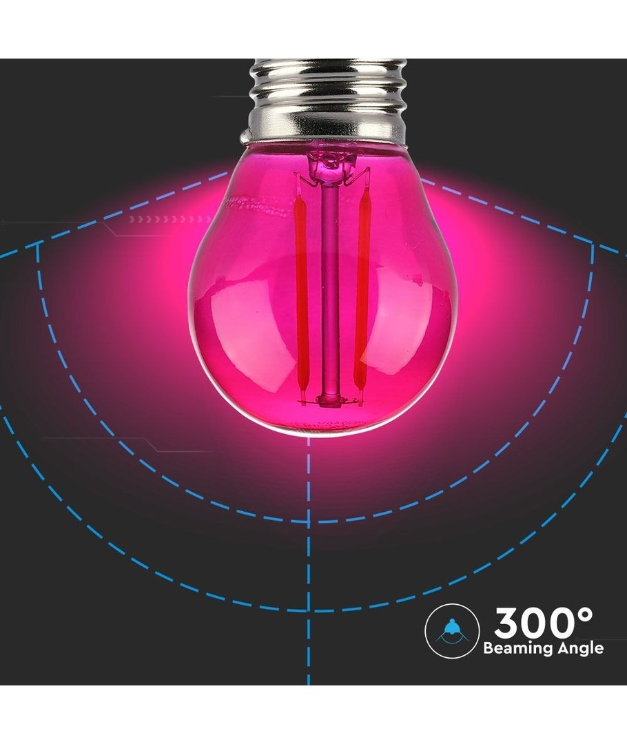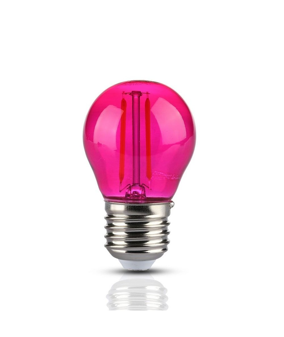 Bring liv ind i dine rum med en V-Tac 2W Farvet LED Kronepære, som tilbyder et unikt, pink lys med en kultråd-effekt. Denne LED pære er perfekt til dem, der ønsker at tilføje et strejf af farve til hjemmet, festen eller en speciel lejlighed.