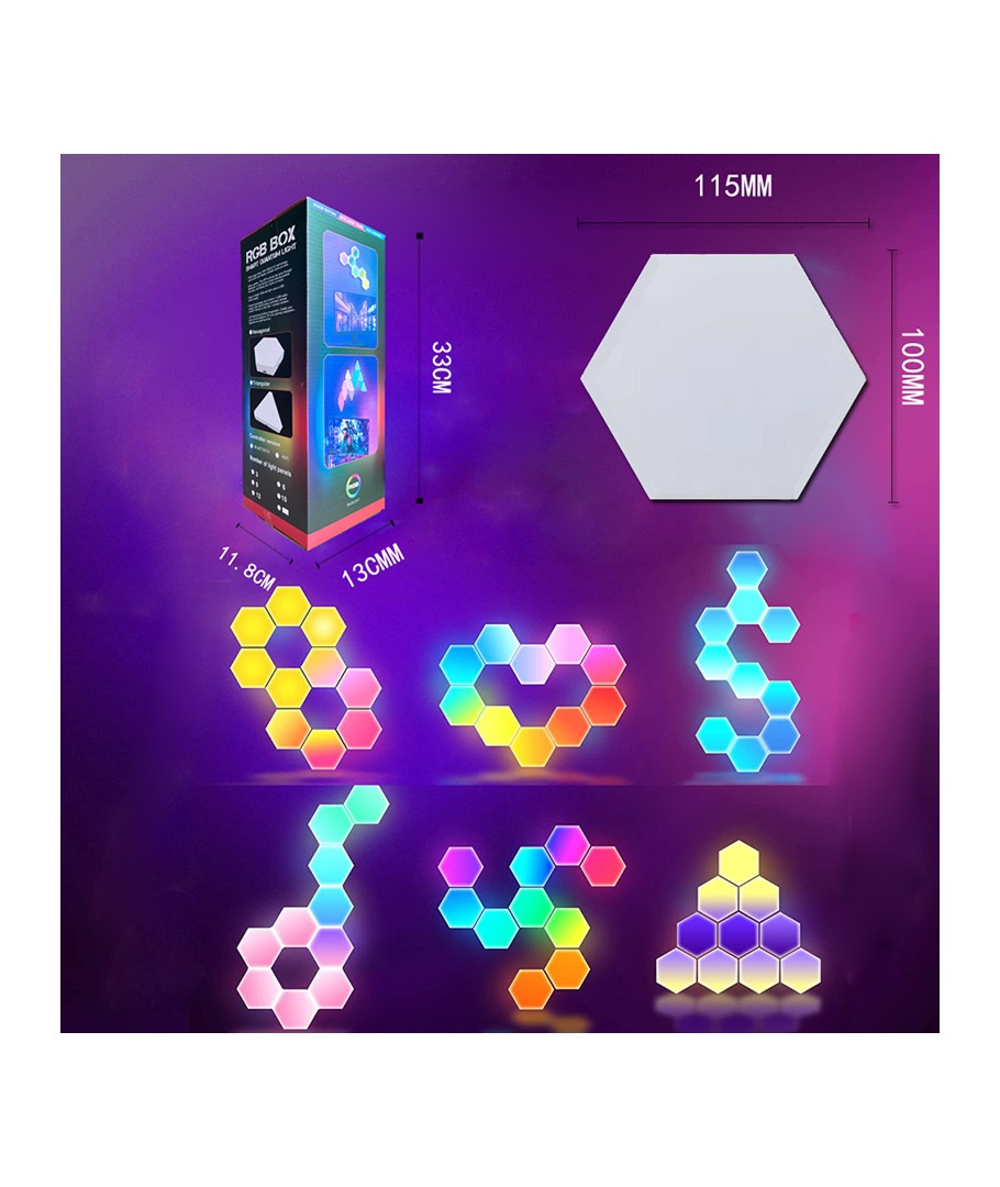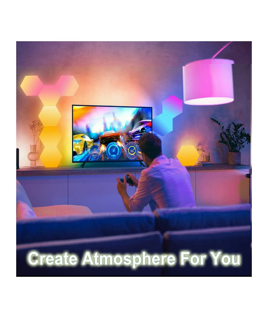 For dem, der søger en kreativ og fleksibel belysningsmulighed, er dette RGBIC Hexagon væglys sæt det ideelle valg. Med brugervenlig installation og et stilfuldt design bliver det det centrale element i dit rums indretning.