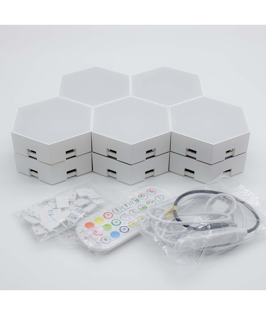 De fleksible hexagonmoduler kan placeres i lige den form og det mønster, du ønsker, takket være deres enkle tilslutningssystem. Uanset om du vil have en lineær installation eller en mere kunstnerisk konfiguration, er mulighederne næsten uendelige.