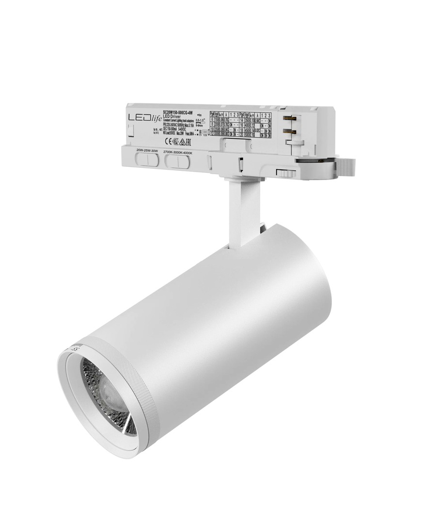 Oplev fleksibel belysning med denne skinnespot, ideel til både professionelle og private miljøer. Med justerbar effekt på 20/25/30W, kan du skræddersy lysets intensitet til dine behov, mens tilslutning til 230V sikrer nem installation.