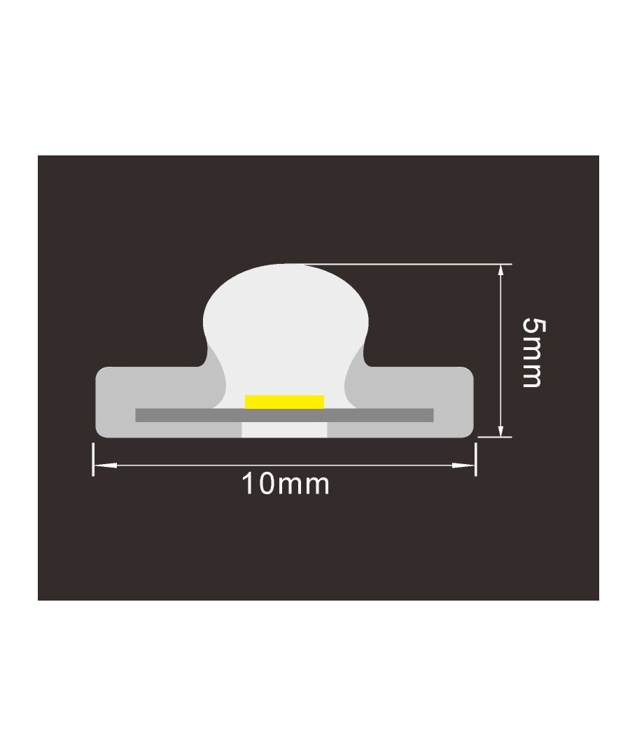 Med en dæmpbar funktion, kan lysstyrken indstilles efter behov, hvilket tilføjer fleksibilitet i anvendelsen. Den kompakte dimension på 10 x 5 mm gør det nemt at integrere strippen i enhver installation.