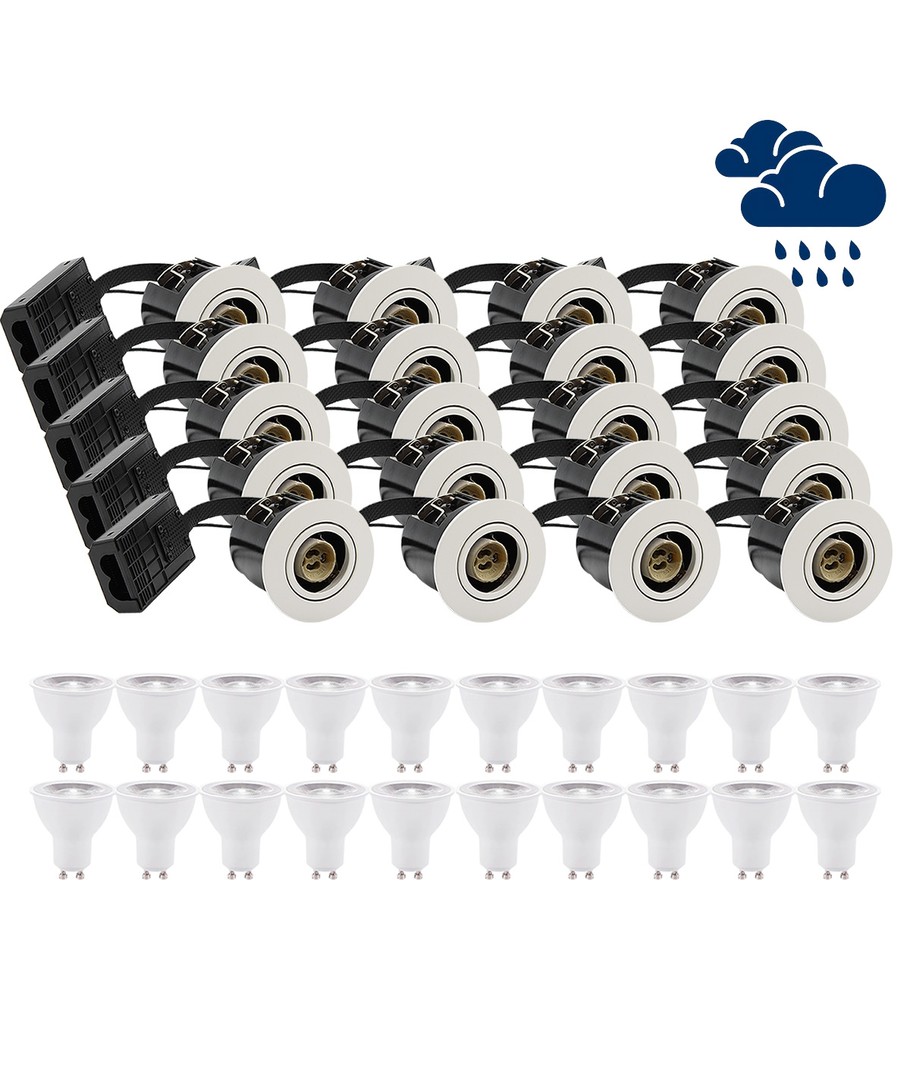 20 stk. udendørs indbygningsspot inklusiv 6W ikke dæmpar LED pærer.