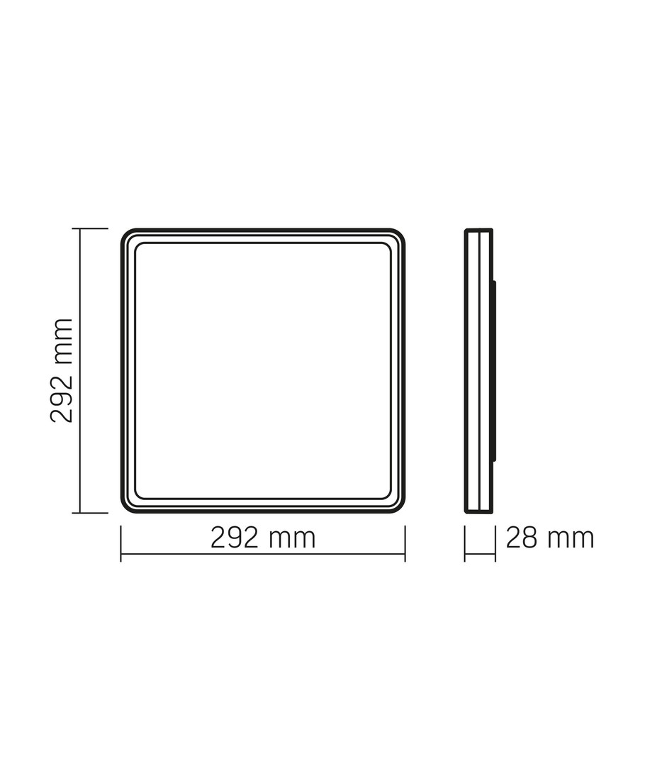 Den neutrale hvide kulør på 4000K giver et perfekt og effektivt arbejdsmiljø, hvor alle belyste emner fremstår helt naturlige uden blå eller gule toner. Den firkantede lampe kommer i en kompakt størrelse på 292 x 292 x 28 mm, som gør den nem at installere i de fleste rum.