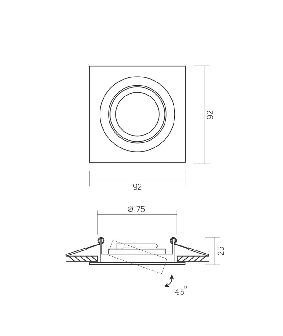 Specifikationer:Denne indbygningsspot er ideel til tørre områder, og med en hul størrelse på 75 mm, er den let at installere i forskellige lofttyper. Takket være den klassiske GU10 fatning kan du vælge lyskilder, der passer bedst til dine behov, dog bør den maksimale effekt ikke overstige 30W.