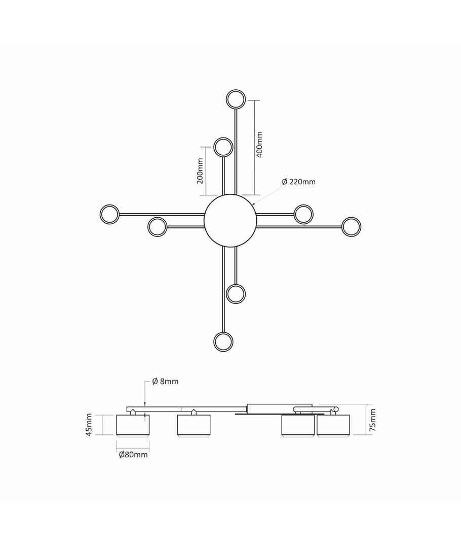 Bemærk, at lyskilder ikke er inkluderet, hvilket giver dig friheden til at vælge den type lys, der passer bedst til dine præferencer og behov. Muligheden for at benytte op til 8 spotpærer gør dette armatur utroligt alsidigt, perfekt til at skabe stemningsfuld og fokuseret belysning i ethvert rum.