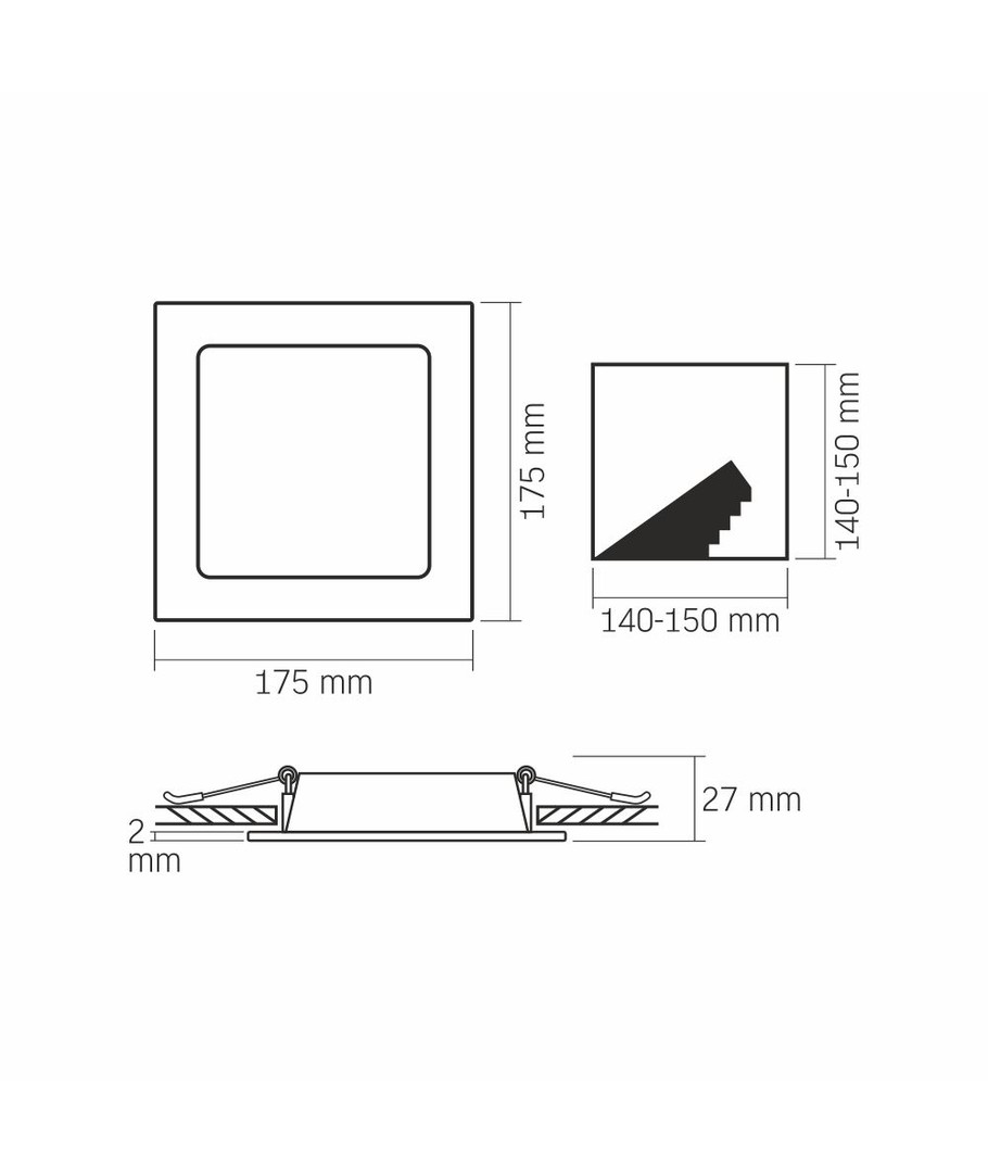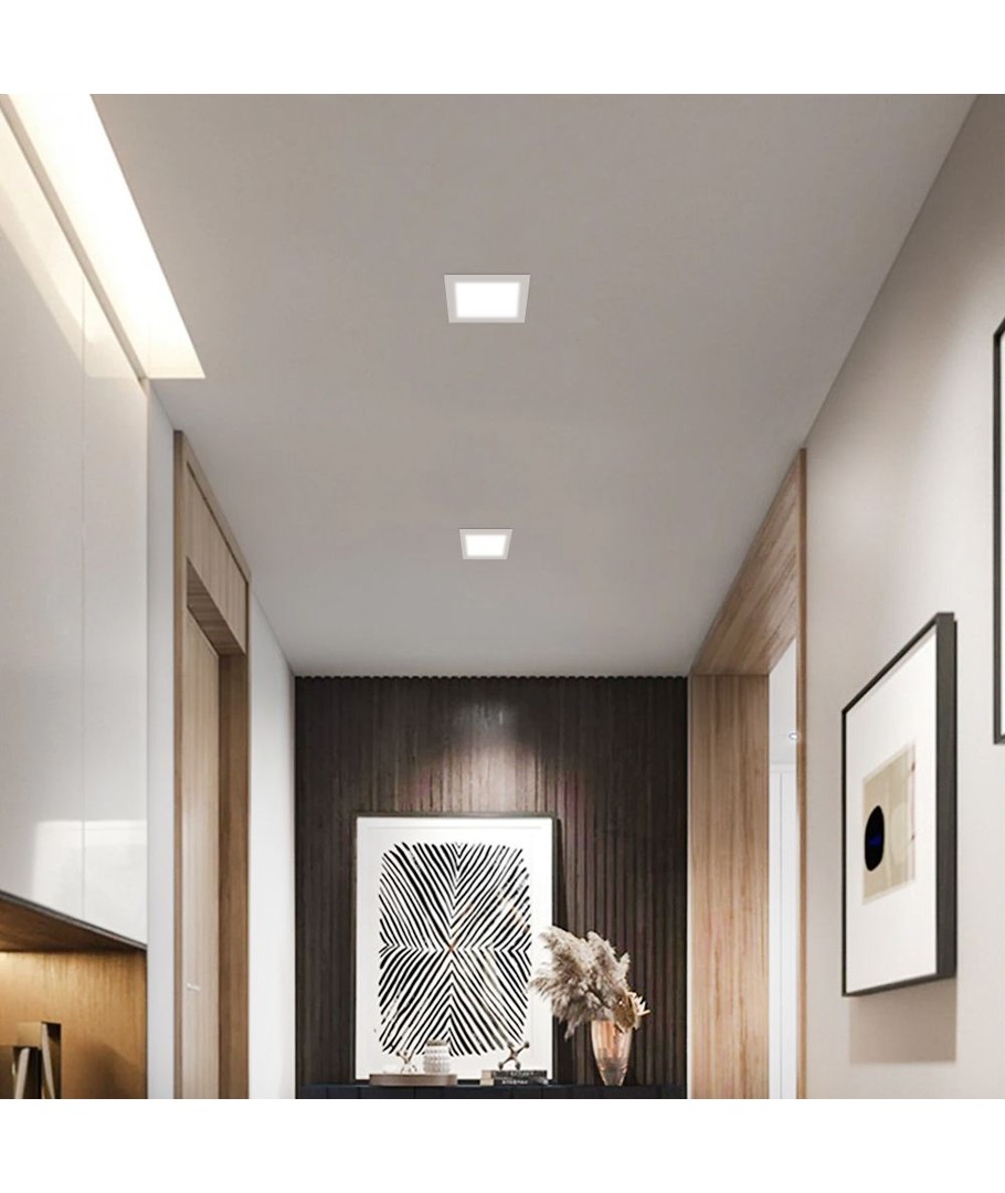 Denne firkantede LED downlight er en 12W lampe, der sikrer effektiv og jævn belysning med en lysstyrke på 1400 lumens. Den tilsluttes direkte til en 230V forsyning, hvilket gør den let at installere i de fleste rum.