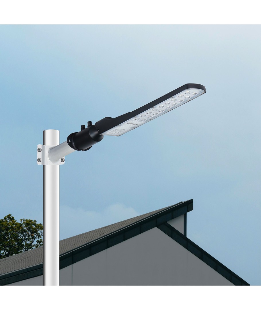 Designet til at oplyse udendørsområder med nøjagtighed og effektivitet, er denne gadelampe udstyret med en 50W LED, der sikrer en imponerende lysstyrke på 4500 lumens. Det brede lysudsendelsesmønster på 90x130 grader muliggør en jævn og omfattende dækning, hvilket er ideelt til både by- og boligområder.