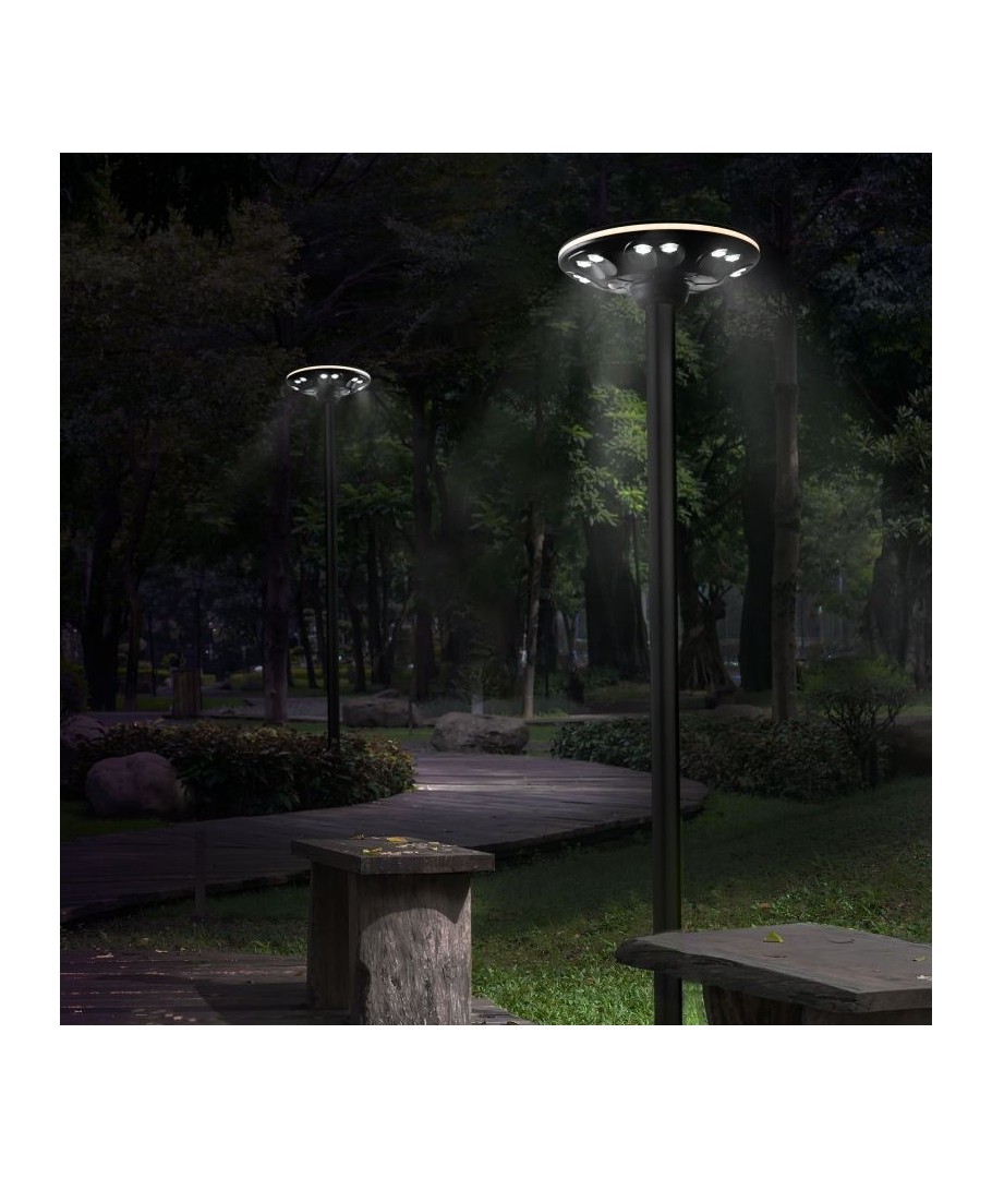 Med dette LED solcelle parklys kan du nyde godt af den avancerede teknologi, der leverer høj ydeevne og betydelige energibesparelser uden at gå på kompromis med den æstetiske appel i din udendørs indretning. Skab en indbydende og tryg atmosfære i din have, park eller på din indkørsel med denne økonomiske og miljøvenlige belysningsløsning.