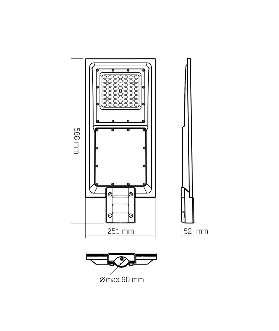 Den integrerede bevægelsessensor gør gadelampen til et praktisk valg, idet den lyser op ved detekteret bevægelse, hvilket øger både sikkerhed og bekvemmelighed i mørke områder.