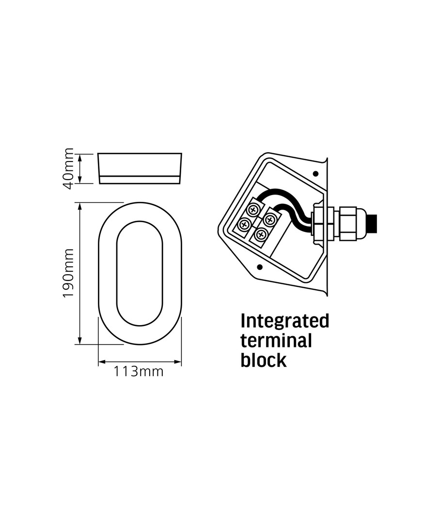 Målene for lampen er 113 x 190 x 40 mm, hvilket gør den kompakt og nem at integrere i enhver indretning. Med den integrerede lyskilde behøver du ikke bekymre dig om at skifte pærer, hvilket sikrer en problemfri og langvarig belysning.